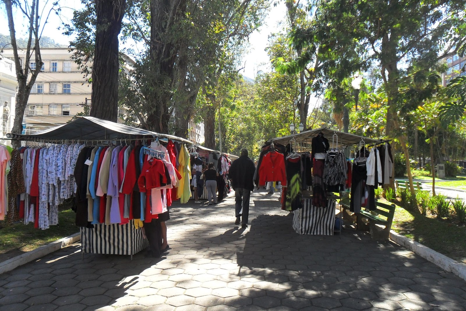 Semana passada, p/mim, foi uma semana frenética, com mil coisas a fazer. Para compensar, e recarregar as baterias, eu e meu marido resolvemos curtir um pouquinho o dia lindo de inverno, do domingo, e fomos passear na Praça Getúlio Vargas, um dos cartões postais da minha cidade, Nova Friburgo. Aproveitando a oportunidade, fomos prestigiar a feirinha de artesanatos da referida praça para comprarmos roupinhas para os nossos monstrinhos, pois as noites têm sido muito frias por aqui.